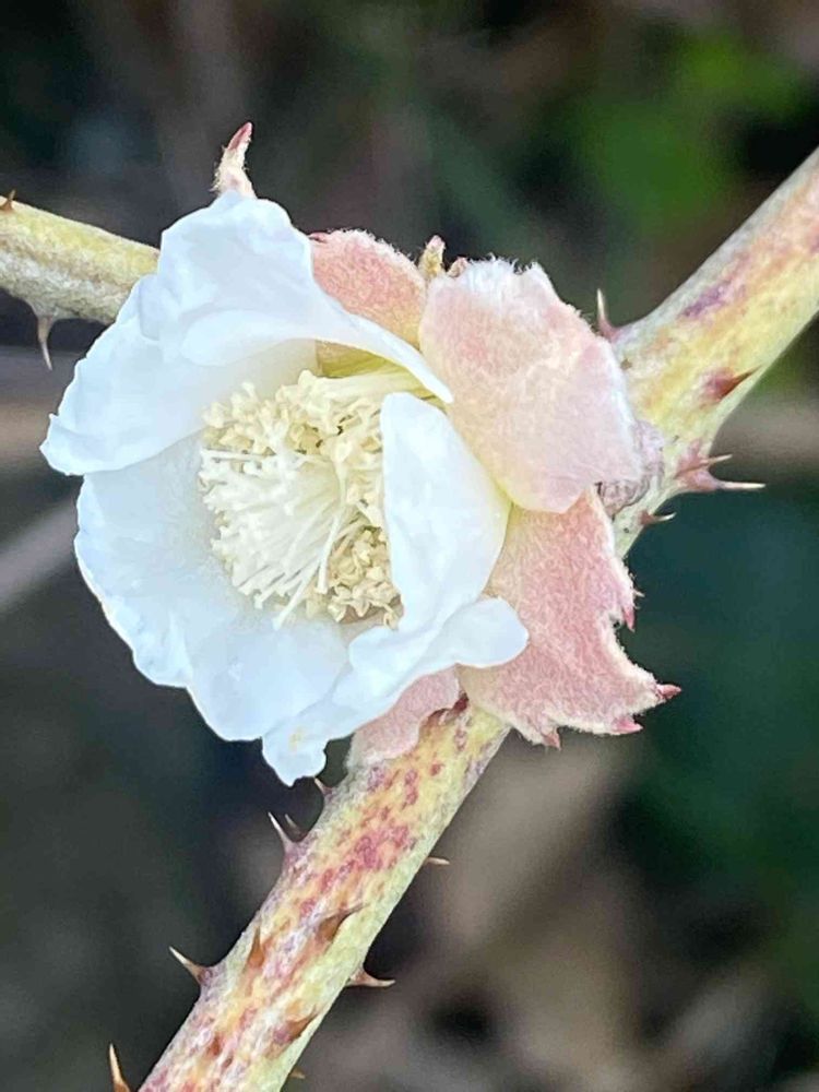 フユイチゴによく似ていますが、花は大ぶり。もうすぐ実がなりそうですから、季節も違います。茎も太くてがっしりしています。実がなる頃に又、来れたらいいなぁ。