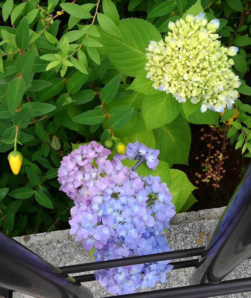 写真を撮った時はアジサイしか見てなくて、後で黄色い蕾に気が付きました😅