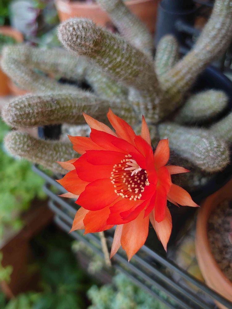 大きな蕾の付いてた白檀さんが咲きましたヾ(*´∀`*)ノ❤鮮やかな赤いお花が素敵です(⁎˃ᴗ˂⁎)🌵❤今年も休みの日にちゃんと咲いてくれました😆🌵