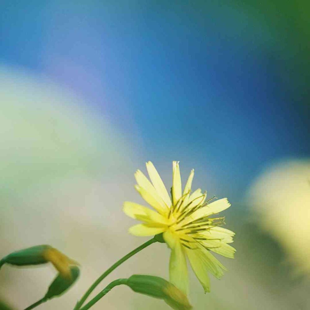オニタビラコかな?二当たりのよい山の南面です。バックがきれいだったので、1枚!湖面が移りこんでます。なにげない野草も近くで見ると様々で、見飽きないですね。