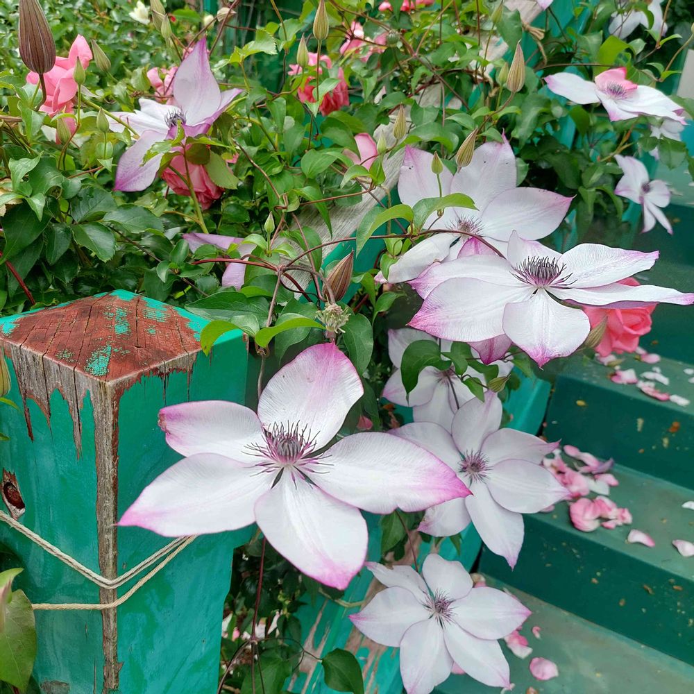 クレマチスが緑の階段に巻き付いてて素敵でした😊