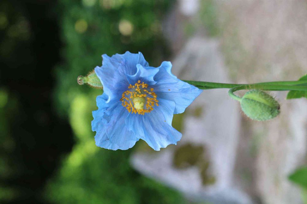 ヒマラヤの青いケシを、正面からもう1枚。この植物園では、種からの栽培に成功し、100株も咲いているみたいです。