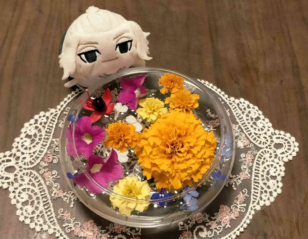 マリーゴールドやペチュニアをたくさん浮かべてみました💕