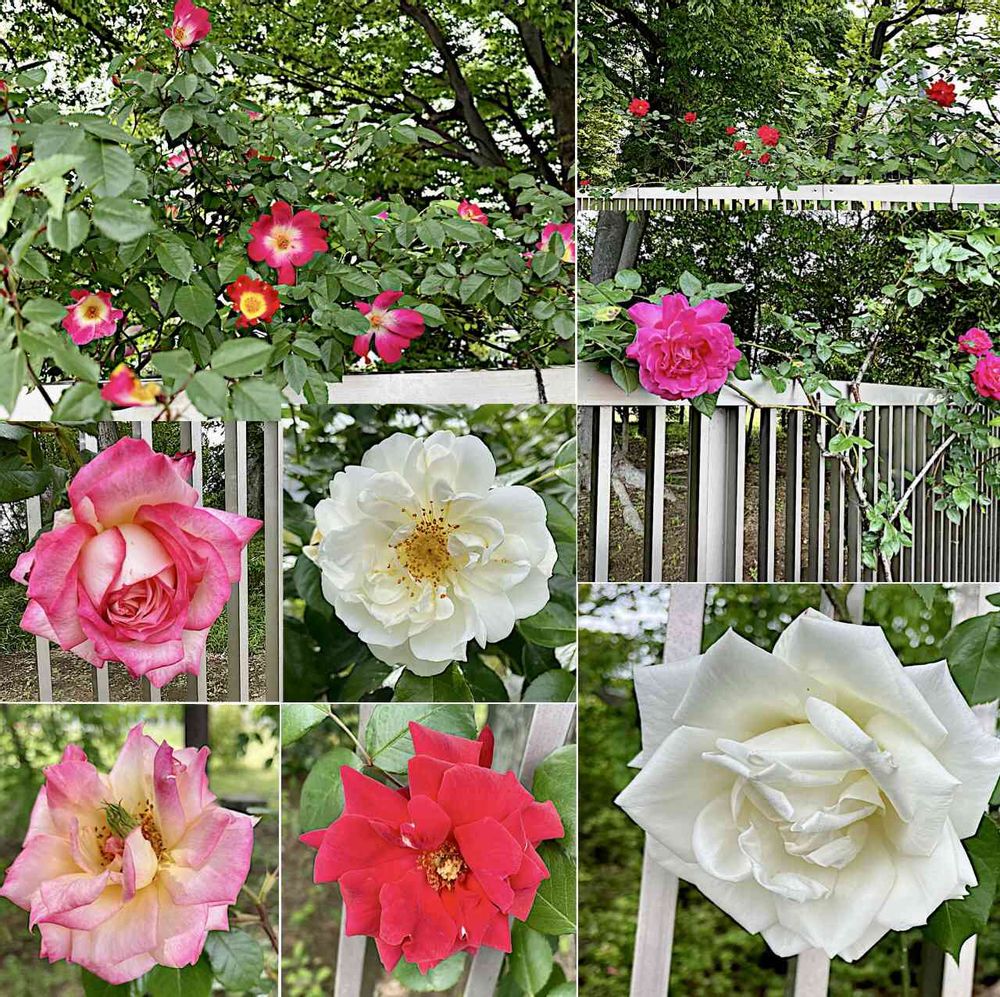 お出かけ先,バラ(薔薇),/フェンス格子に観る、色彩豊かな花の競演/の投稿画像