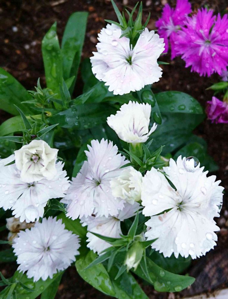 真っ白な雨の雫のナデシコ爽やかで可愛いですね🤗