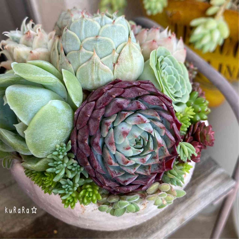 KuRaRa☆さんのシャルルローズ,多肉植物,多肉寄せ植えの投稿画像