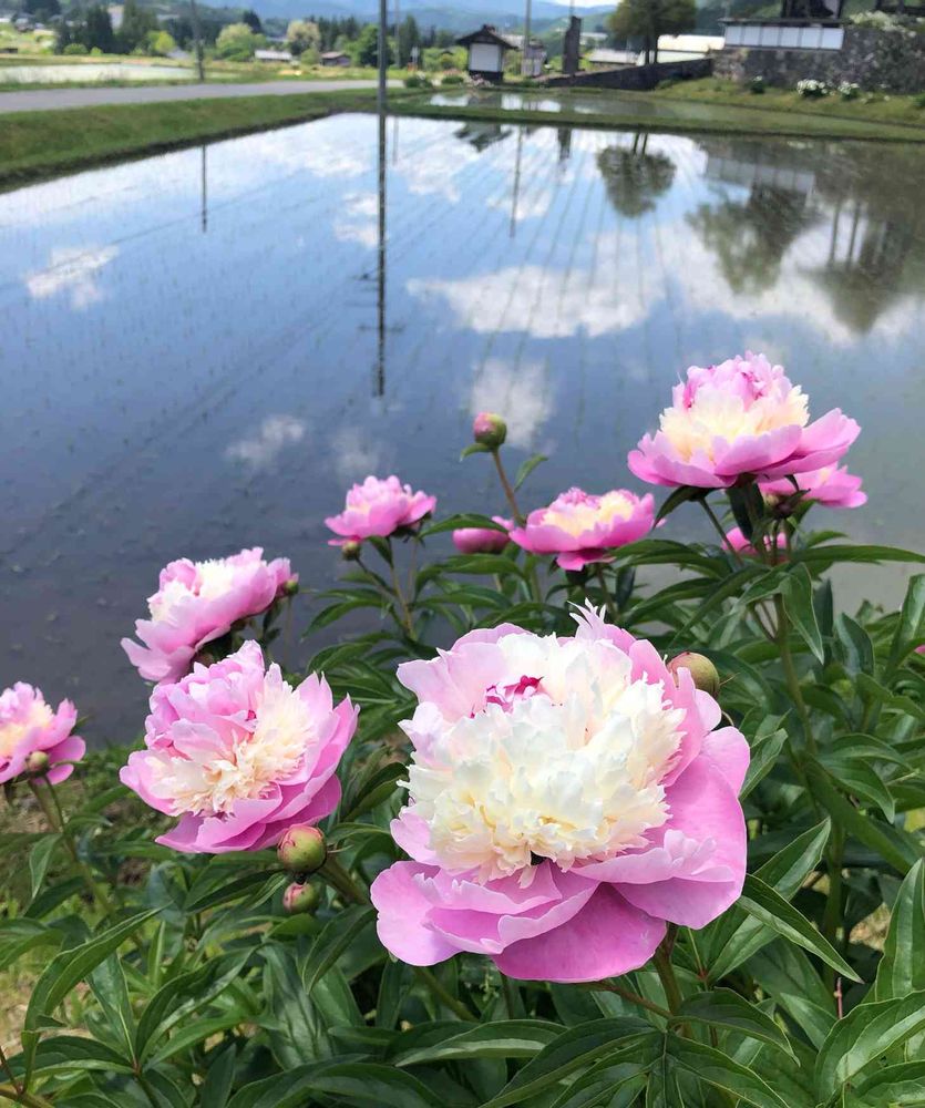 ピンクや白や赤の素敵なシャクヤクさんの中で
