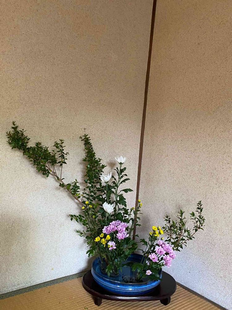 今回のお稽古は、お花が菊オンリーで物足りなかったんですけど、マートルの葉っぱをちぎってみたらものすごくいい香り💓🥰