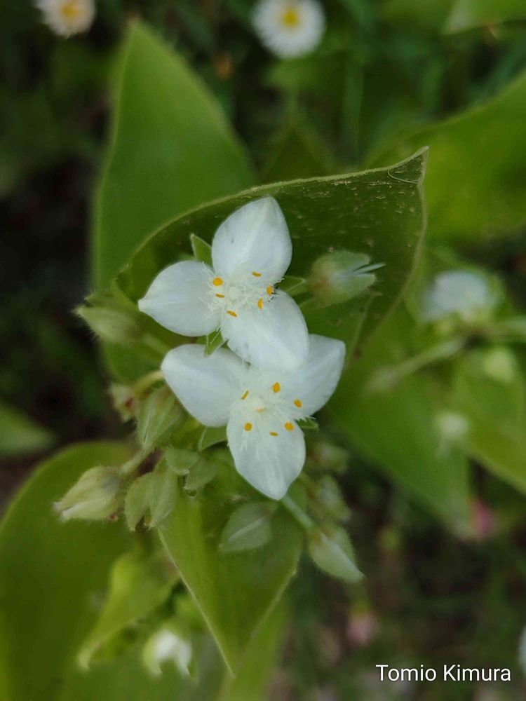 散歩道(京都丹波亀岡 南郷公園)に咲いていた、白花ムラサキツユクサです。