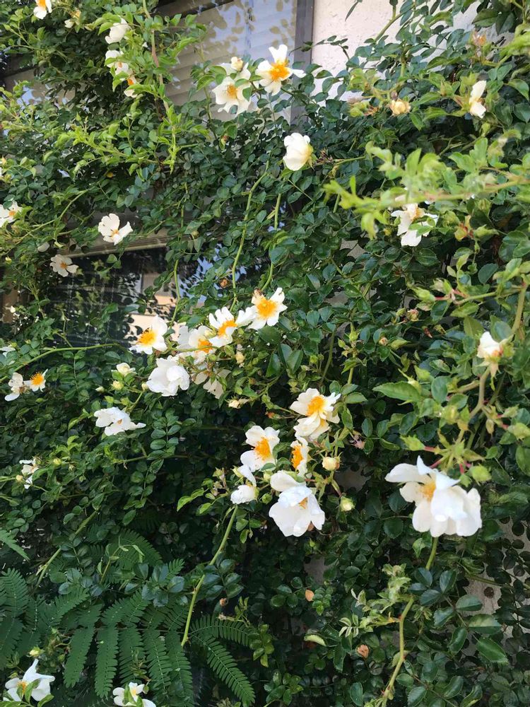 店の中から大きく中庭が見れる美容室を夫と2人で営業。還暦過ぎの二人です。いつも、花が何かしら咲く庭に!