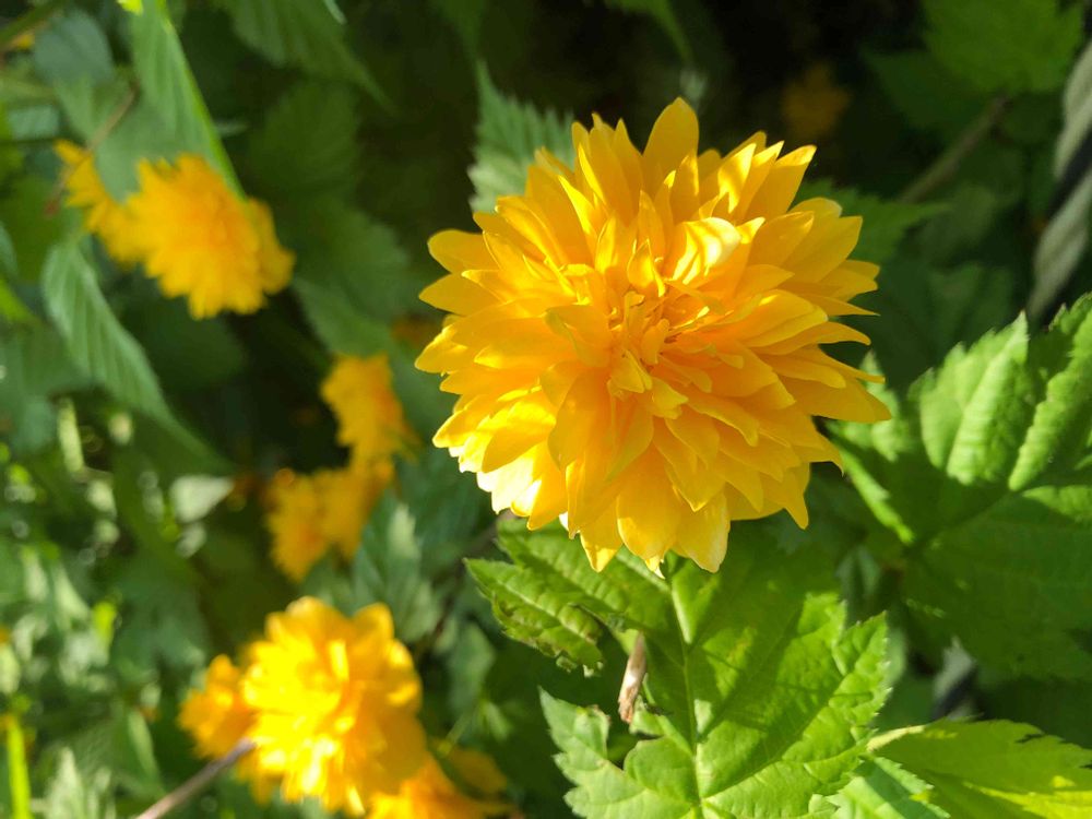 陽の光をたっぷり浴びた八重ヤマブキ。