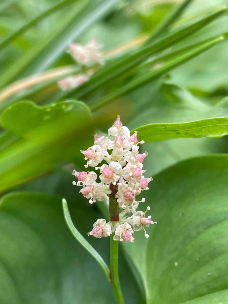 マイヅルソウが終わりに近づいていますが、あれ?白かった花がピンク色になってます💗💖💕😆😍