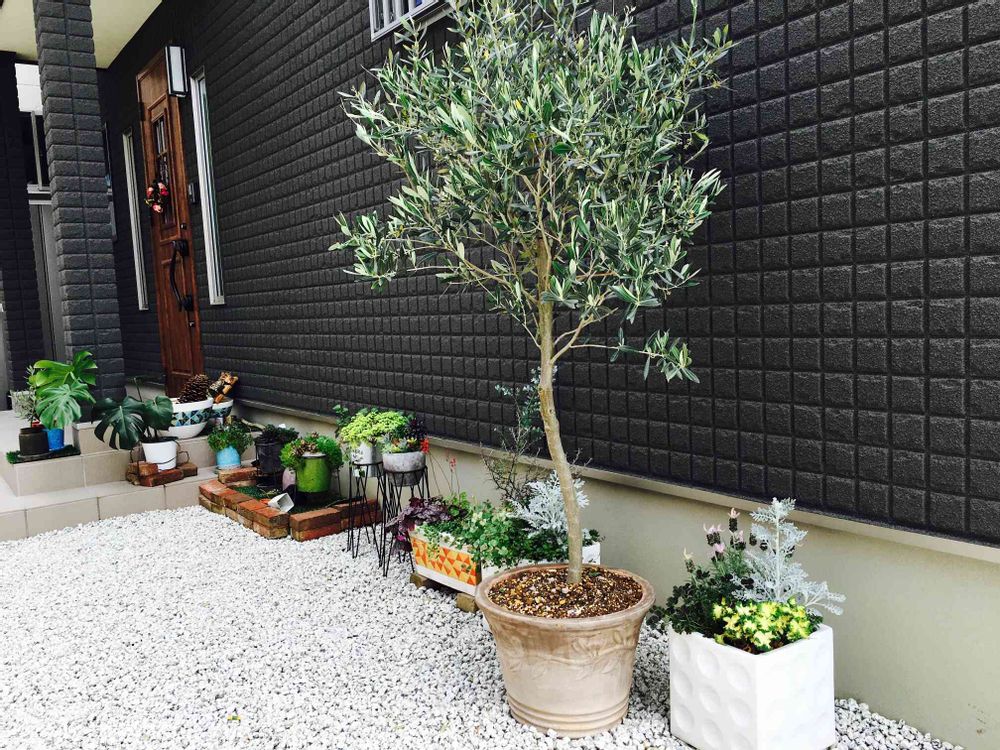 娘が泥んこでオリーブの植え替えを手伝ってくれましたよ〜。