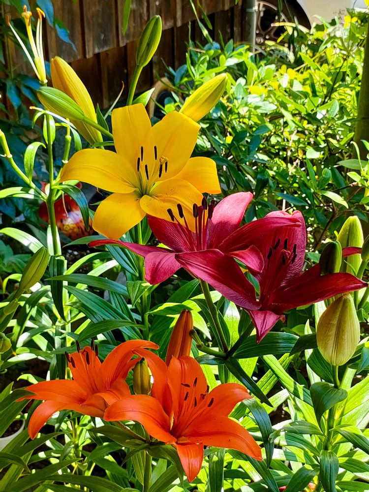スカシユリの黄色💛のお花が咲きハイブリッドリリーのオレンジ色🧡はお花2つになりました😍