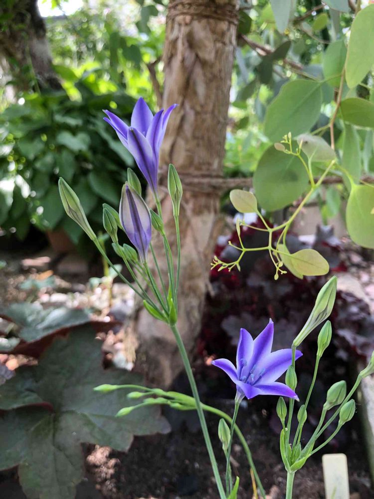 今年もユーカリポポラスの株元でブローデイアルディが咲きました💙🤍