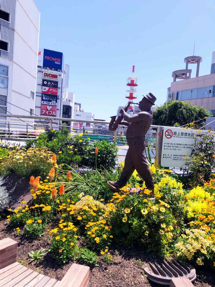駅前の呼称 Yデッキには、ジャズの街ヨコスカのアート アルトサックスを吹くオジサンがいます。🎷🧔♂️🎶.・*’’*・.♬