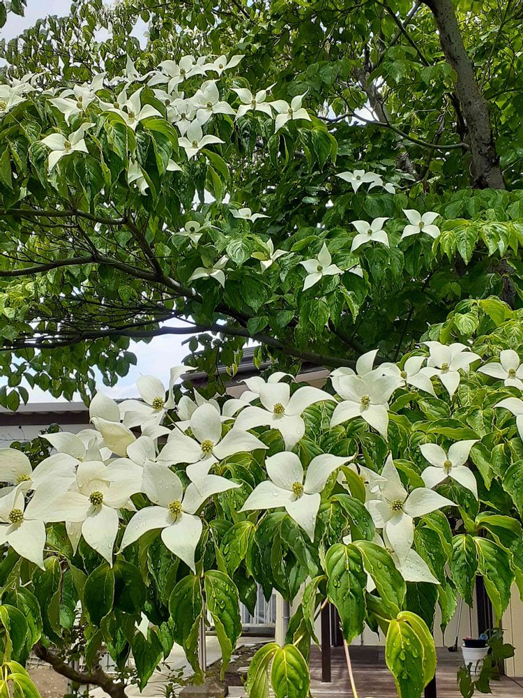 知り合いのお庭のヤマボウシが爽やかで綺麗でした😊