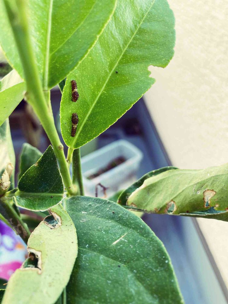 レモン(璃の香)の葉っぱにアゲハチョウの幼虫が…!!