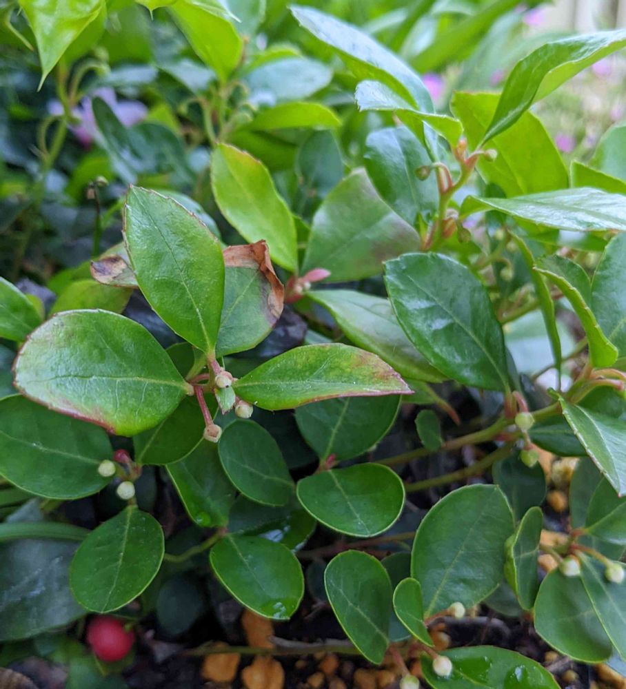 チェッカベリーのようにお花と実が楽しめるのは良いですネ😄🎶