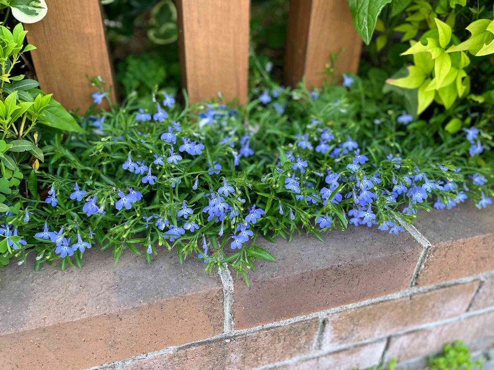 小さな青い花が沢山咲いて夏らしい花壇ですね💜💜💚💚🍀🍀