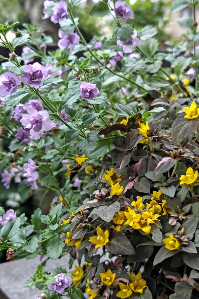 パンジーさんのバルコニー/ベランダ,リシマキアミッドナイトサン,バラ咲きバコパ・スコーピアの投稿画像