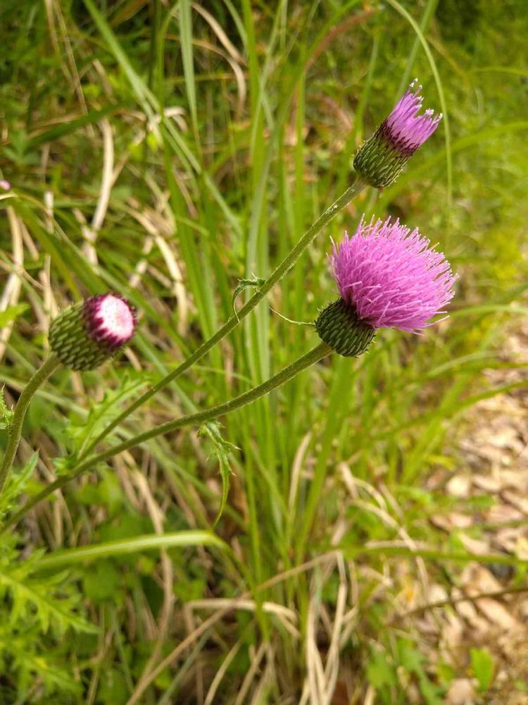 登山口に向かう田舎みちの草むらにたくさんの鮮やかなノアザミ(*˘︶˘*).。*♡