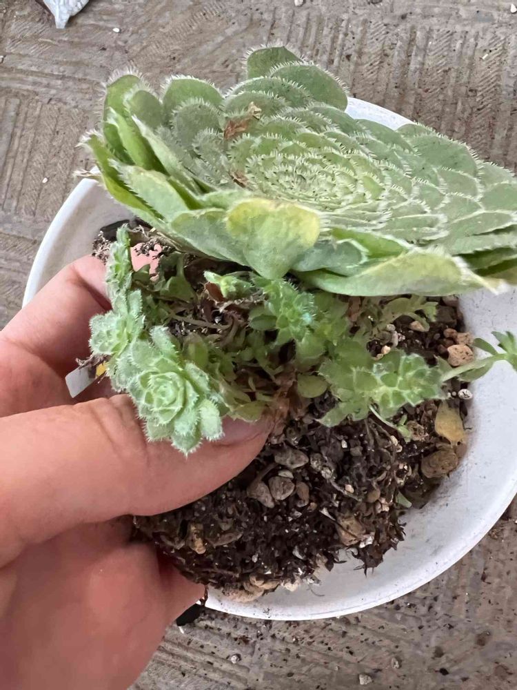鉢に蓋をする様に成長した姫明鏡を植え替えようと思って抜いたら、思った以上に子沢山。