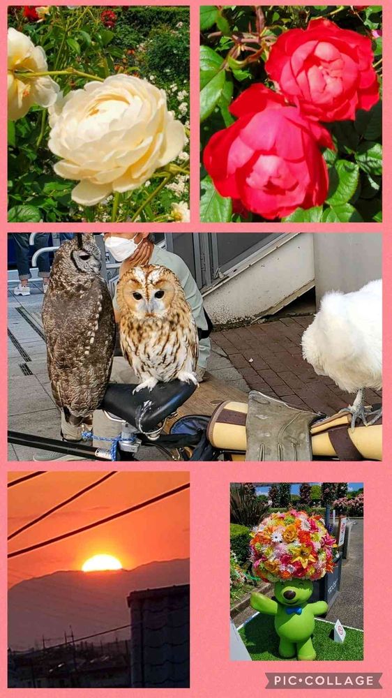 本物のふくろうちゃんがいて、🤪でした😄 ガーデンネックレスのイベントのお花は撤去されていましたが、バラ🌹はまだ咲いていて良かったです🥰