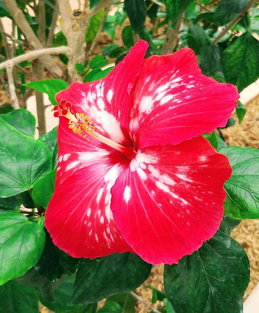 白の模様が入ったお洒落なハイビスカスさんですね❤️🤍❤️🤍🌺🌺🌺