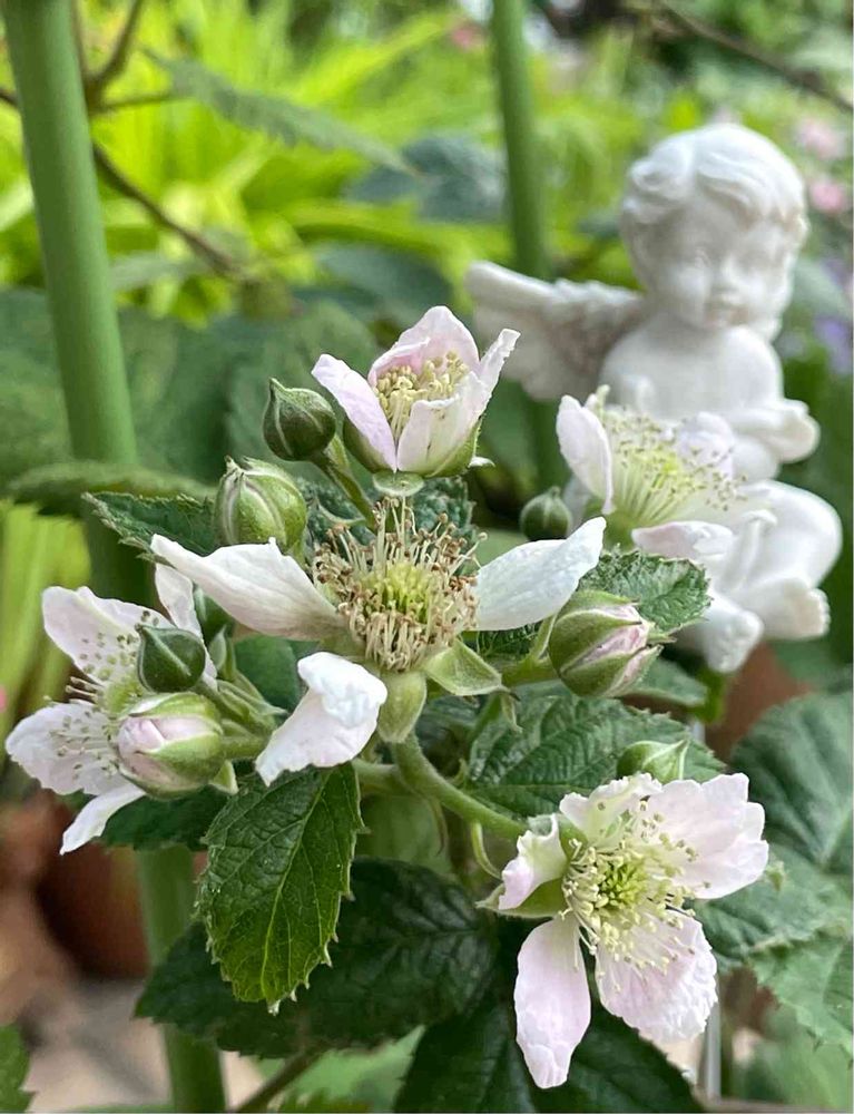 ブラックベリーのお花かわいく咲いてますね〜1ヶ月後ぐらいにはかわいい実ができてますかね〜楽しみですねっ( ˶ˆ꒳ˆ˵ )エヘヘ