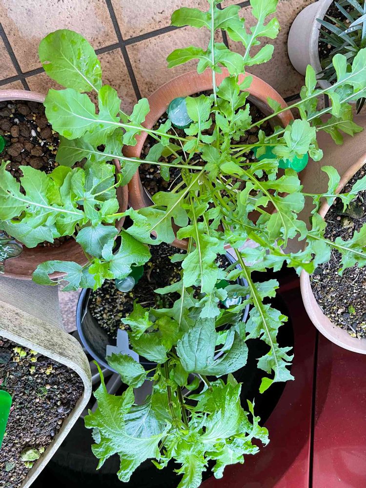 葉を収穫しましたが、ルッコラまで伸びてきました😊👍