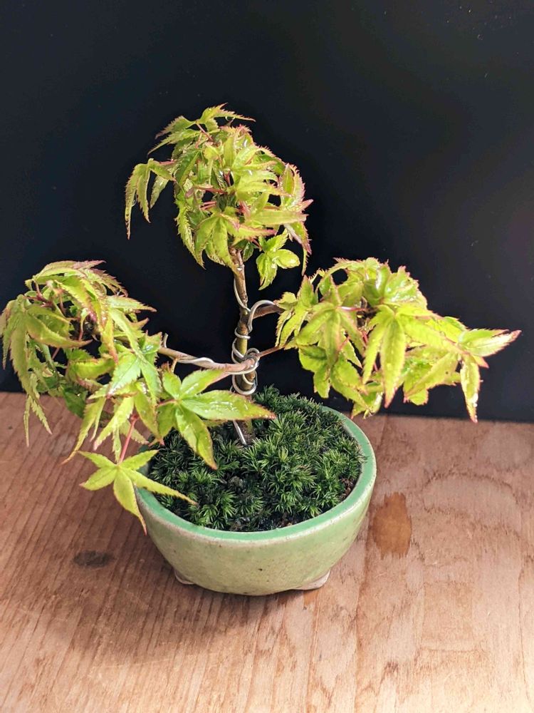 モミジをミニ盆栽に😆根を切りきれず鉢が少し大きい🤔色々な盆栽屋さんにアドバイスを頂いたので少しは、上達したかな〜?😅🥺