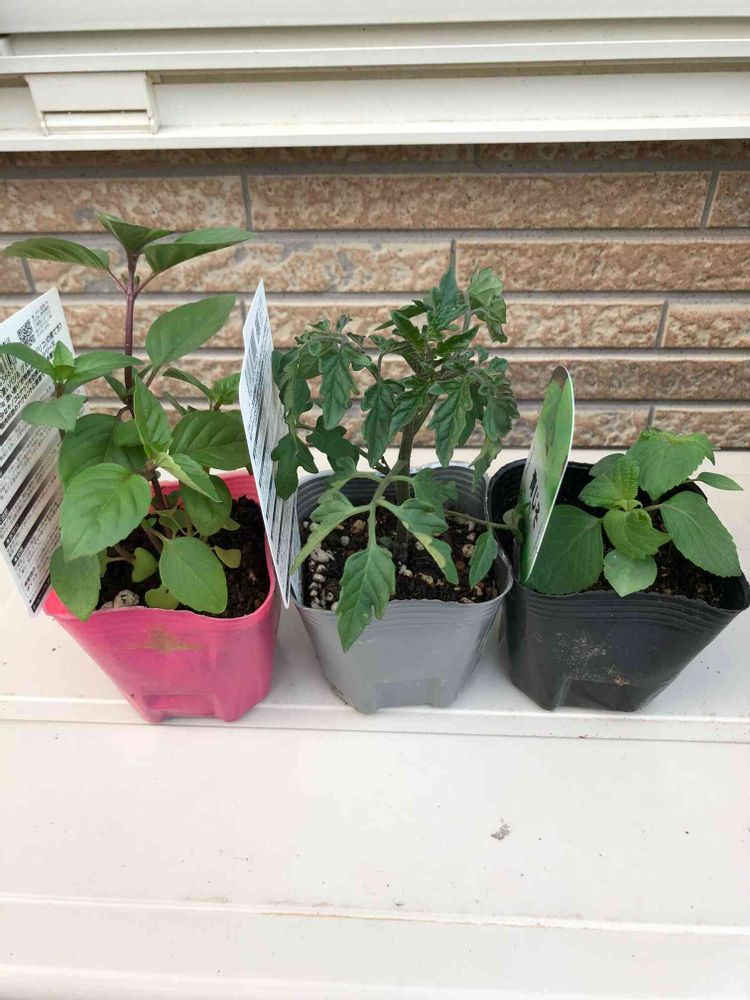 深めのプランターと支柱は、用意されていますか?トマト🍅とバジル良いですね👍