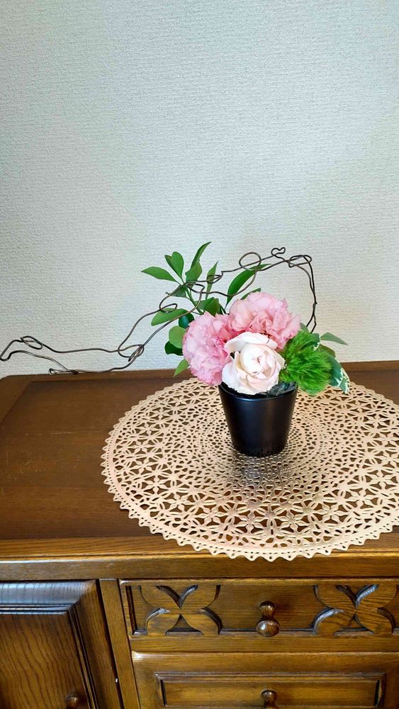 どの写真を投稿しようか迷いましたが…カーネーションで使った形のワイヤーの形に✌️😆✌️