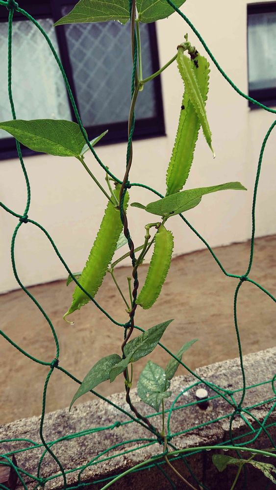 四角豆(うりずん豆)なりだしました。梅雨明けしないと中々ですね😞