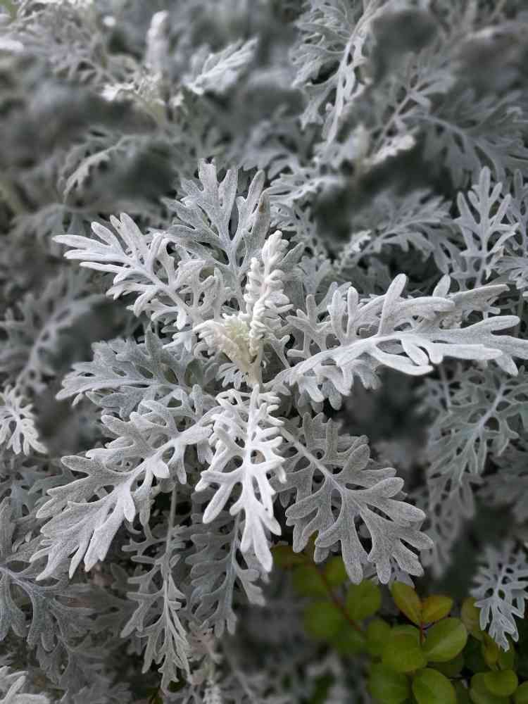 いつか、お家の庭でシルバーリーフを育てたいと思いました。お散歩途中にある花壇の、シロタエギクです。