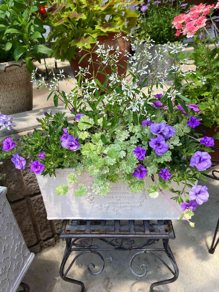 先日定植のカリブラコアとグレコマとダイアモンドフロストの寄せ植え