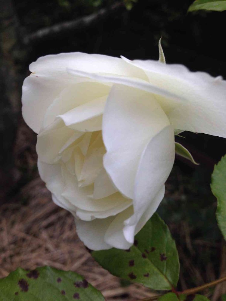 黒点病と闘いながら咲いたアイスバーグ。葉がスカスカで可哀想な事になってます。