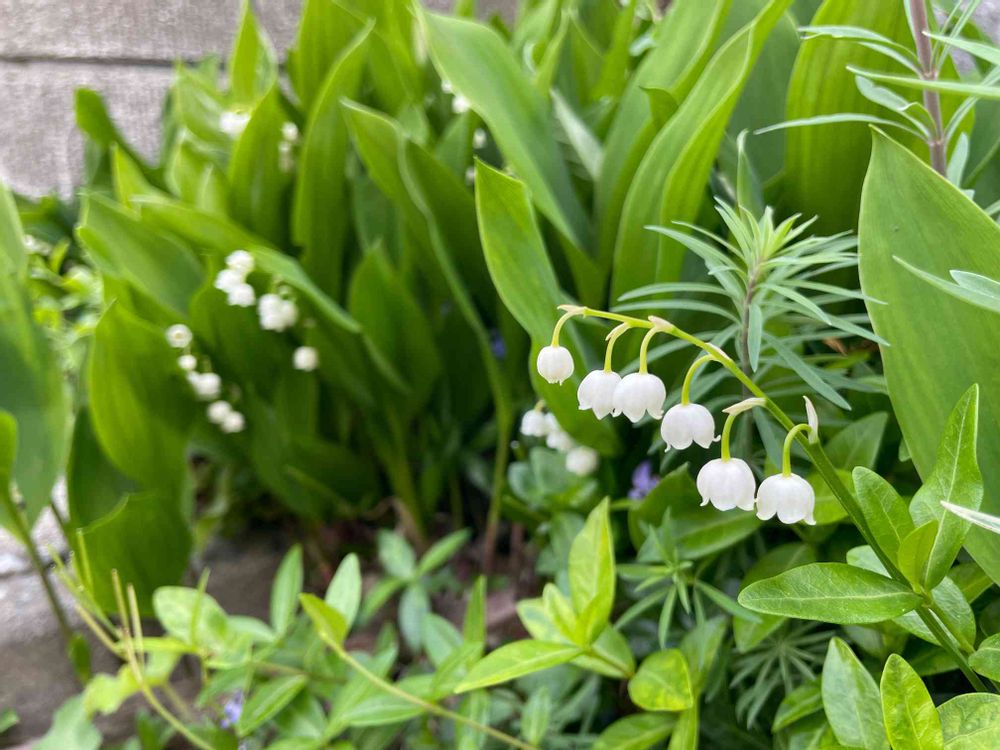 我が家とお隣さん宅の境界線に咲くスズラン!