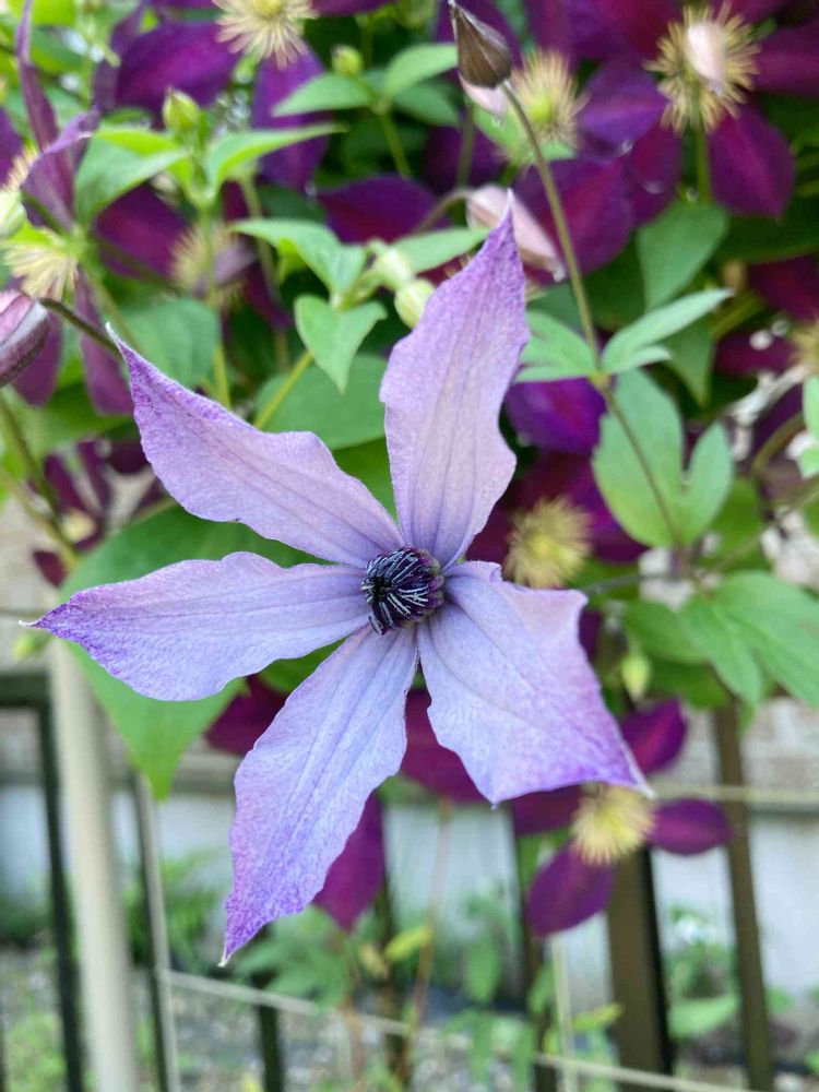 茎が細くて華奢ですが、うまく他のクレマチスに絡まり枝を伸ばしています😆