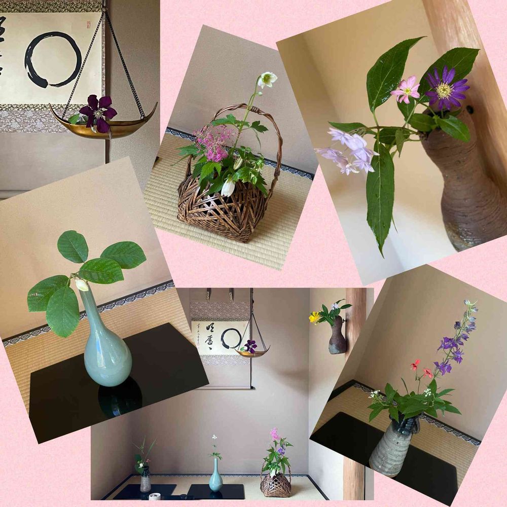 この日の科目は 五人がそれぞれに花を入れるという式の稽古をしました(三友)