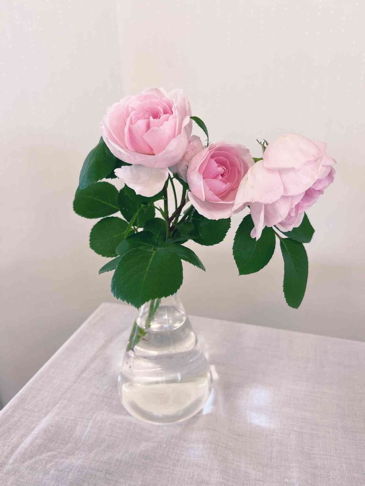 ビーカー?に薔薇を生けるなんて