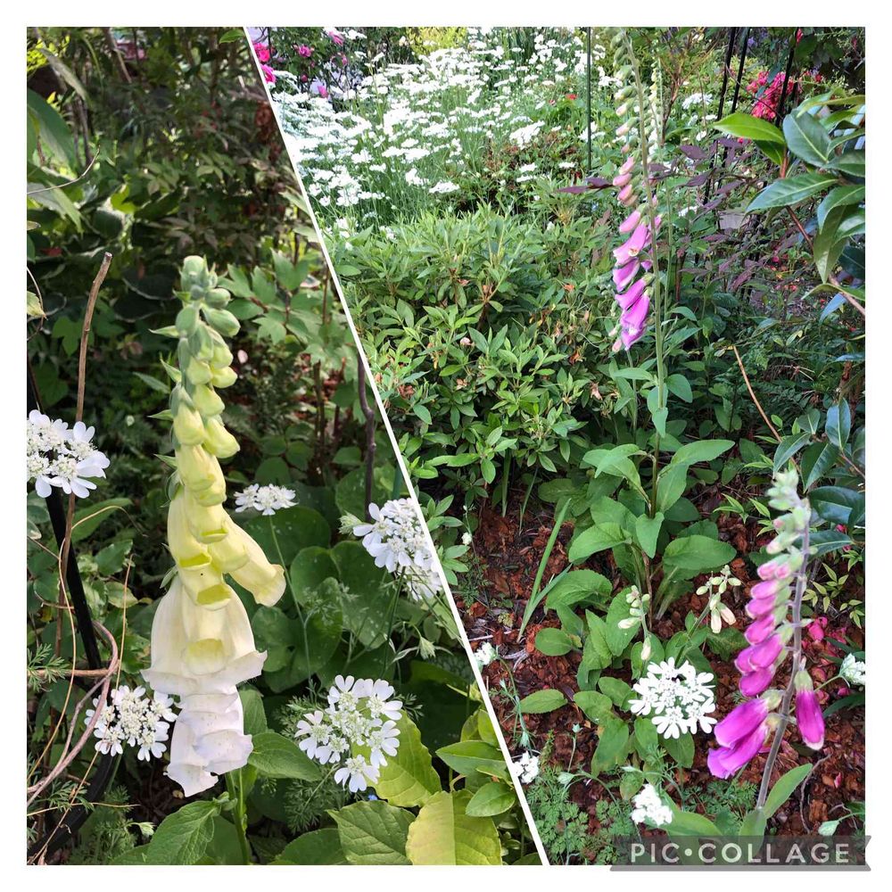 ジキタリス💕こぼれ種で増えているジキタリスとオルラヤホワイトレース🌸