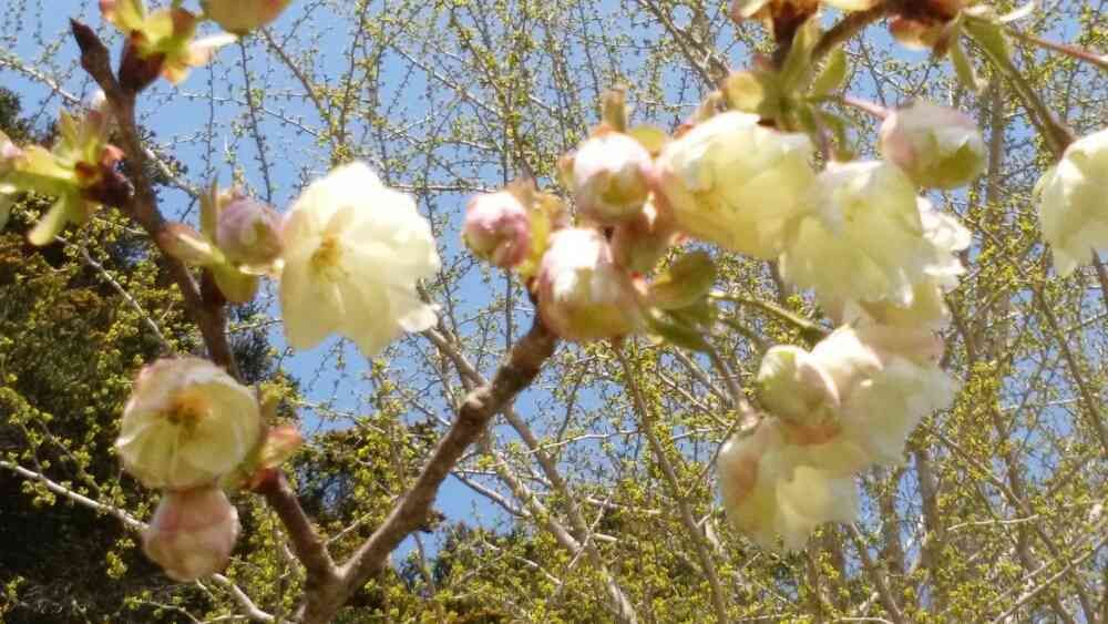 一本、鬱金桜みっけ😊これから咲くみたいです