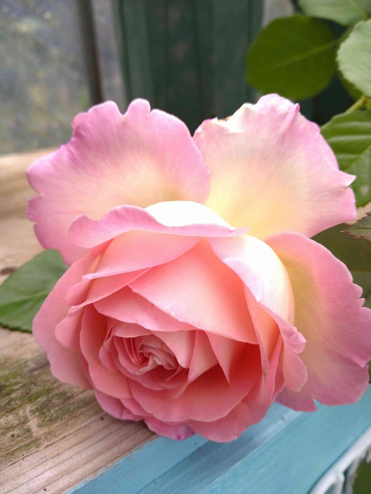 お花が大きくて重たいので棚にもたれ掛かって咲いていましたよ😆
