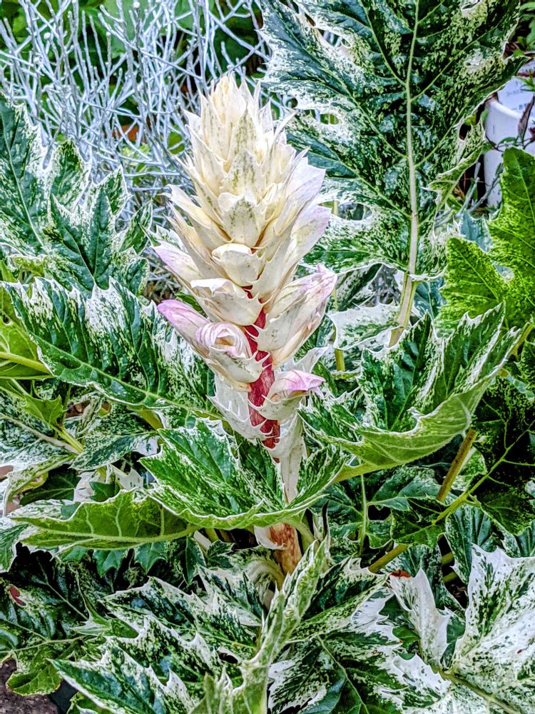 斑入りの大きな🌿✨今年は花が付きましたー😆💓花は大きな金魚草❀って感じです✨