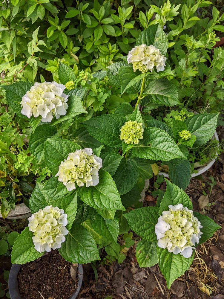紫陽花、緑から白色に変化してきました。シックな紫陽花。