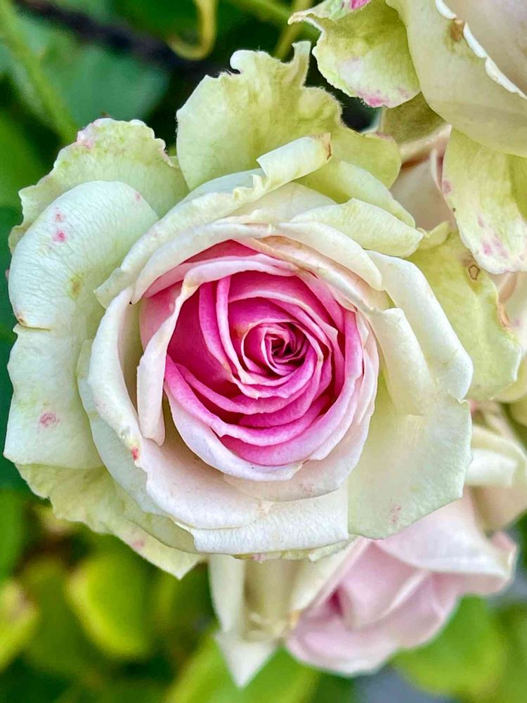 真ん中の方が濃いピンクで、外側が白くてキレイなバラですね☺️