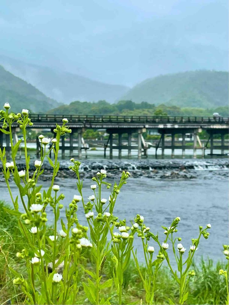 その下を流れる桂川のほとりでヒメジョオンがひっそりと咲いています!