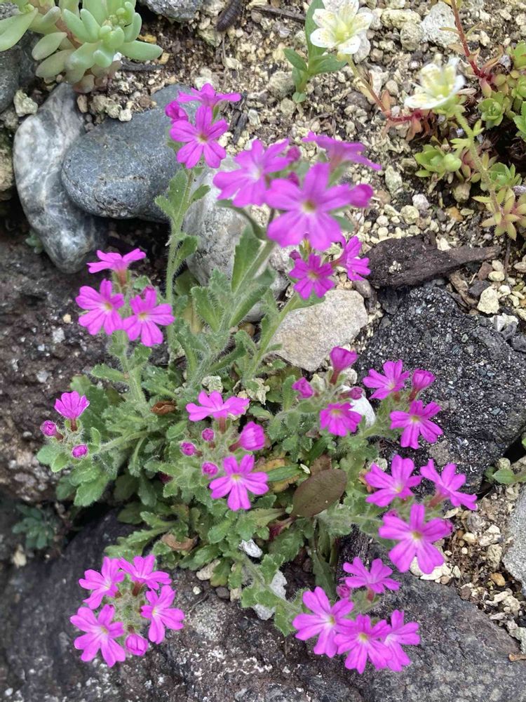 去年タネが飛んだ場所でポツンと育ってた子を、庭の際の石の間に移植。